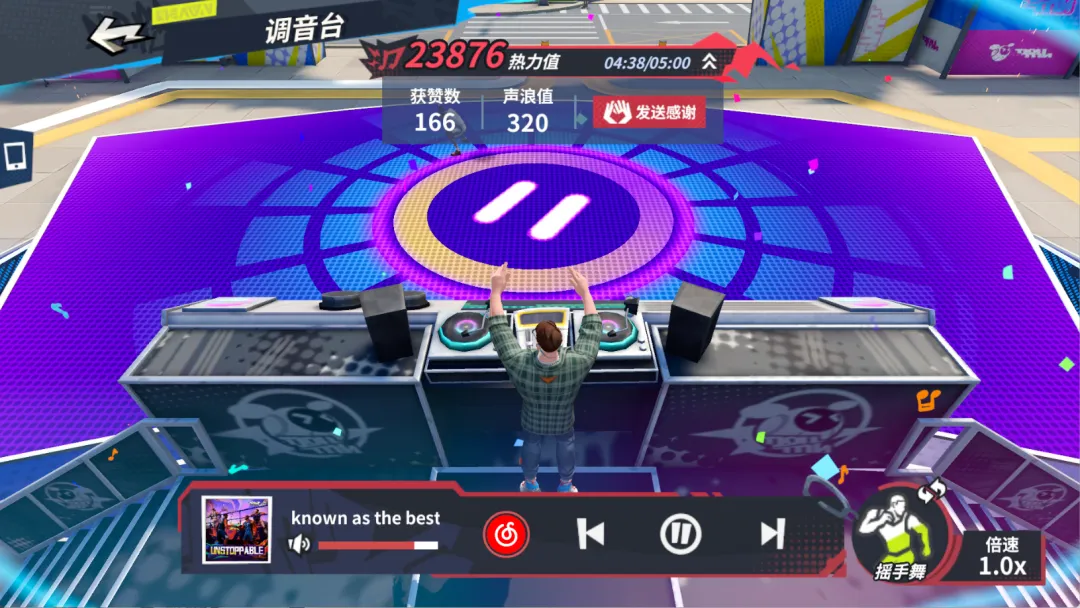 要是碰上调音台被人占着也别急着走。现在都要乖乖排队了,系统自动安排上场顺序,轮到你直接开秀!而且当DJ时还能用聊天功能和台下观众实时互动,氛围直接拉满!