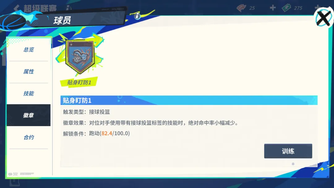 资源充足的情况下,我们可以使用球员特训,通过对球员开展集中大量训练,直接解锁徽章,还能初步预估属性提升情况。这是快速养成球员的高效办法。