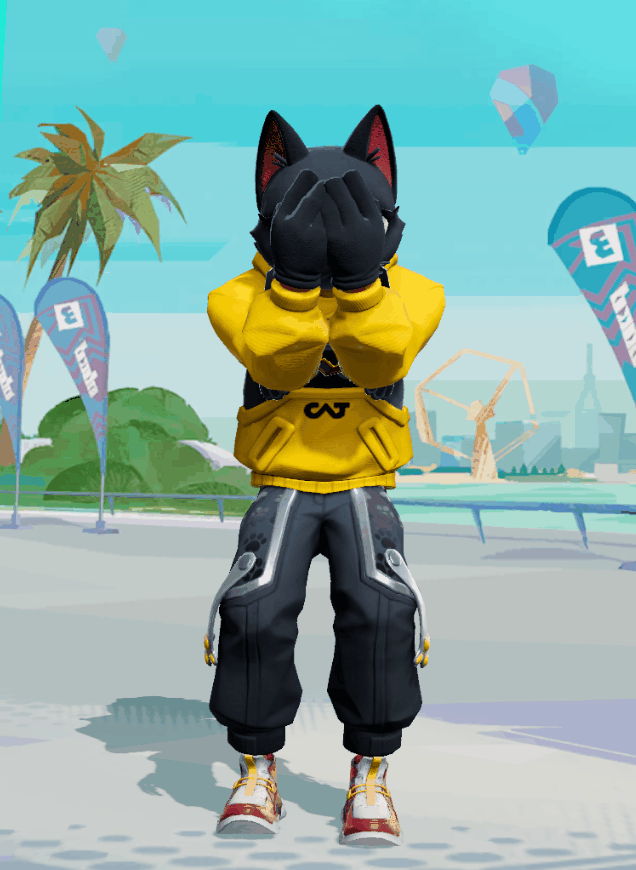 [黑猫]以黑色头套、深色系裤子为主调,而亮眼的黄色连帽卫衣则打破了这份深沉,尽显活力与俏皮。