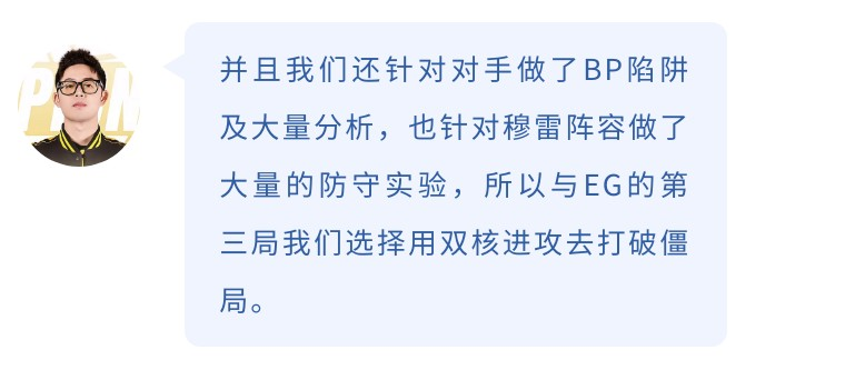 能完成让2追3也离不开他们赛前的战术铺垫,专攻“多核战术”的ADG会根据对手阵容灵活切换打法。当对手拿强防阵容,他们会出双核进行进攻压力的分散;当对面拿空间阵容,他们则会选择多核阵容进行点名。