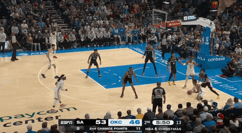 NBA圣诞大战马刺再遇雷霆,完成对卫冕冠军的三连胜!谁看了不说一句:文班亚马打的就是精锐!防守端飞身钉板大帽,进攻端三分抬手就进……攻防两端统治全场的他,势头简直无人能挡!