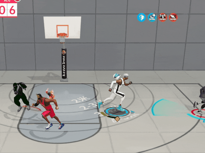 游荡于三分线外的快速切入连招,将对位球员引出禁区,再靠突破速度冲击篮下扣篮得手,这招需提防附近有盖帽角度的协防球员。