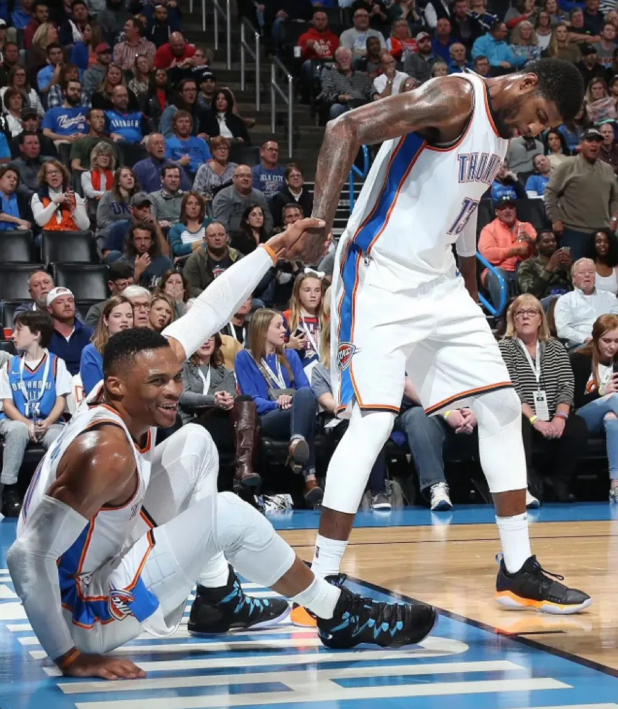 2017年,泡椒与威少在雷霆组成了名噪一时的“龟椒组合”。那个赛季,威少无私的助攻让泡椒打出了生涯代表作,而保罗乔治致命的投射与防守,也成为了威少身边最可靠的臂膀。他们彼此成就,让雷霆在狂野西部依旧保有竞争力。